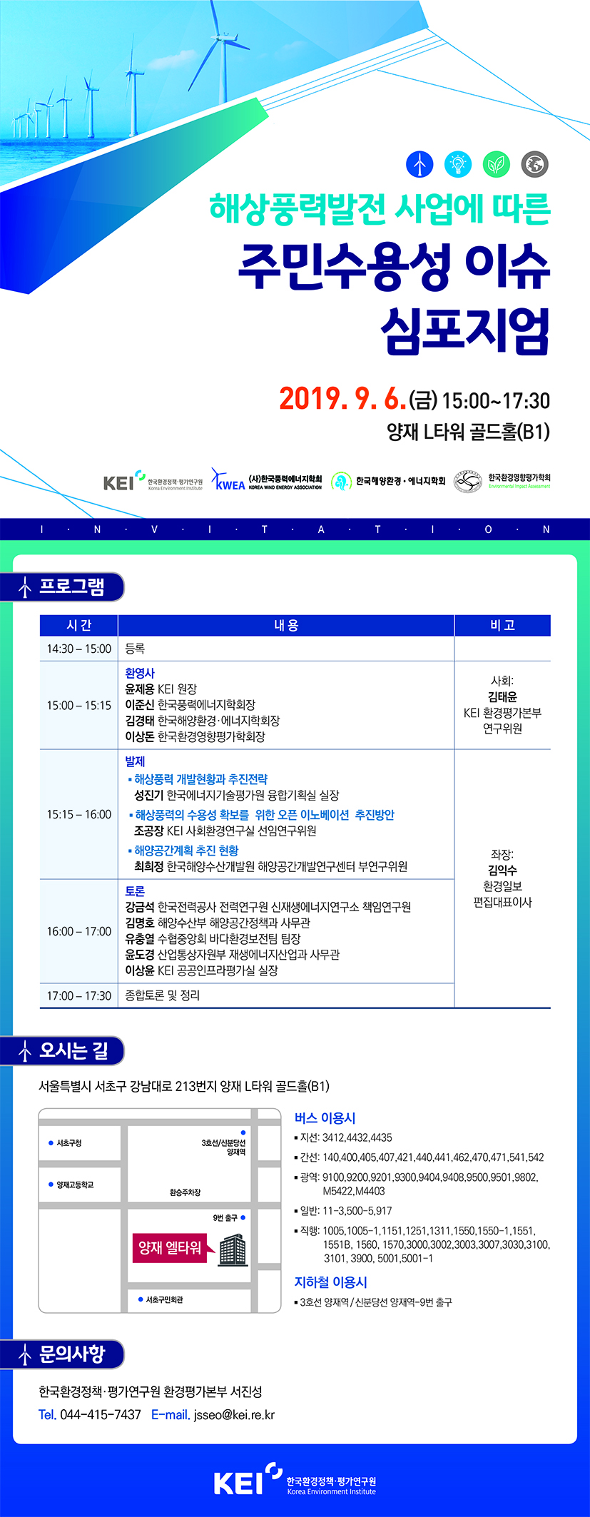우리 학회가 참여하는 해상풍력발전 사업에 따른 주민수용성 이슈 심포지엄을 아래와 같이 개최합니다.