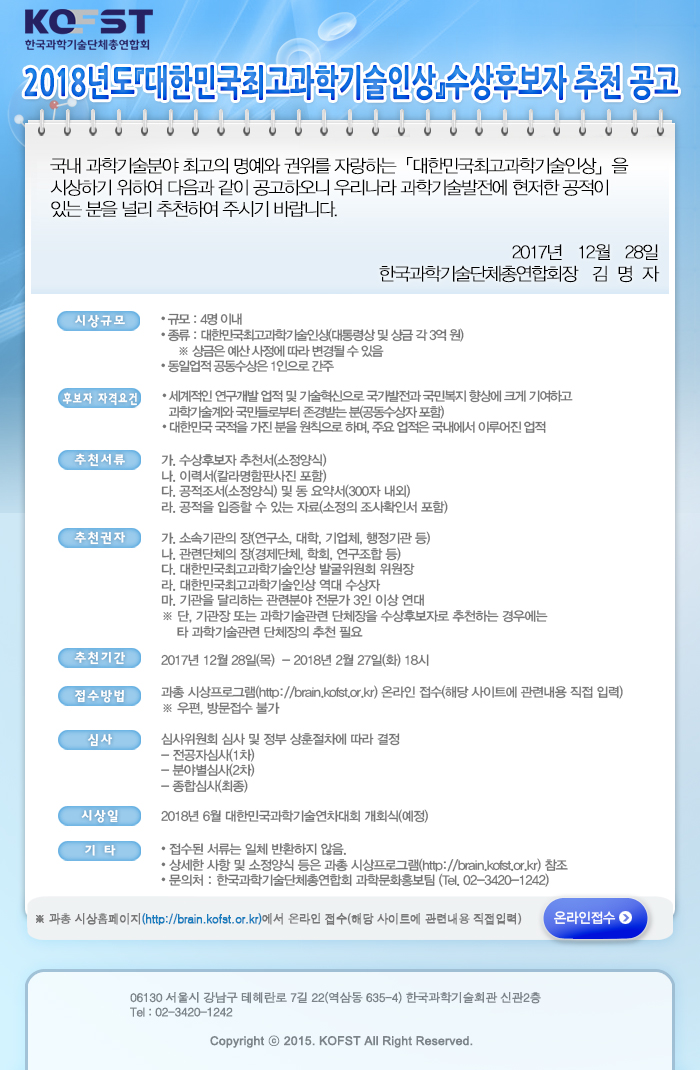 [외부] 2018년 대한민국최고과학기술인상 수상후보자 추천 안내