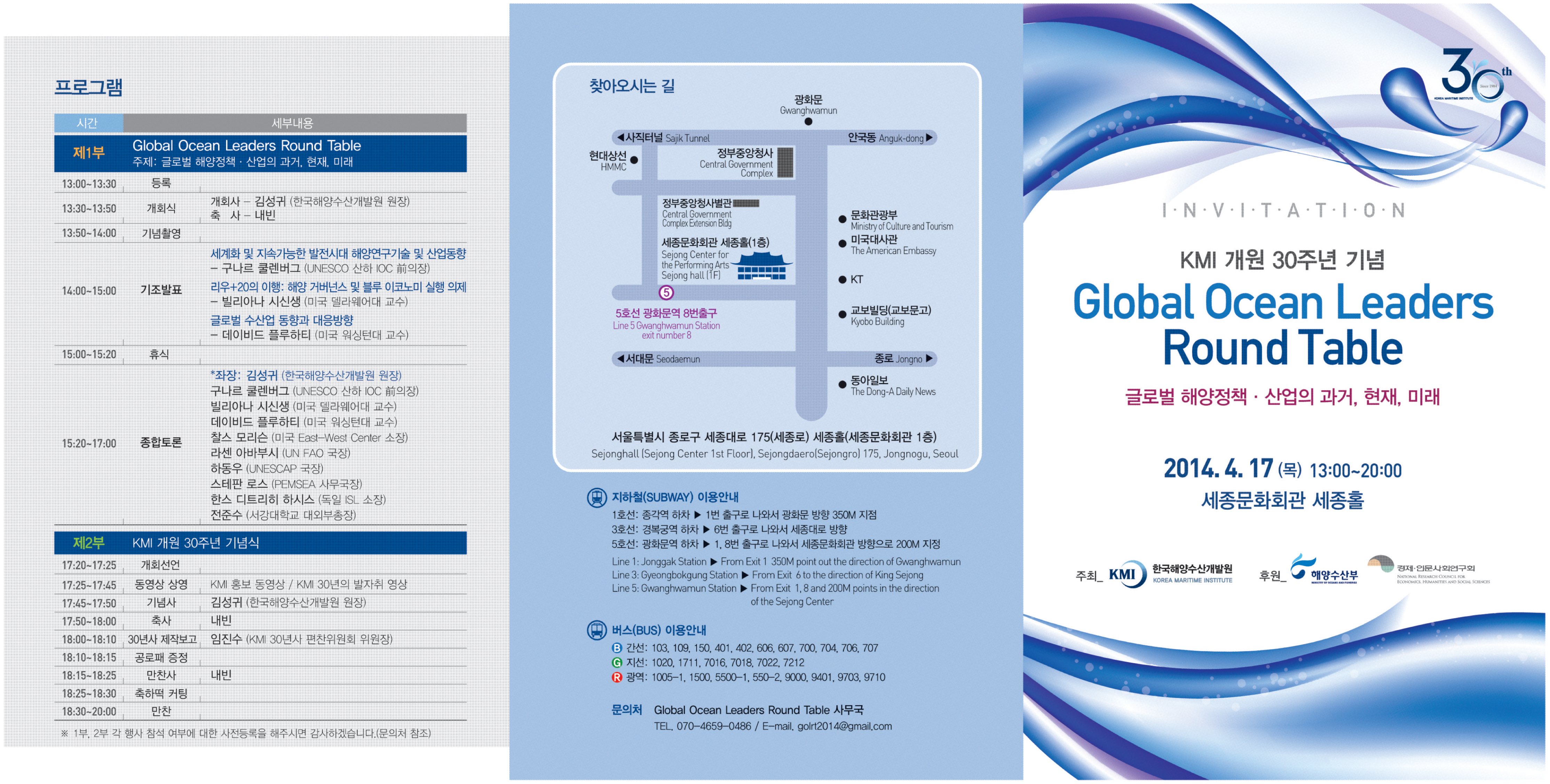 이에 그동안 보내주신 성원과 격려에 진심으로 감사드리면서, '개원 30주년 기념 Global Ocean Leaders Round Table 및 기념행사'를 마련하였습니다.