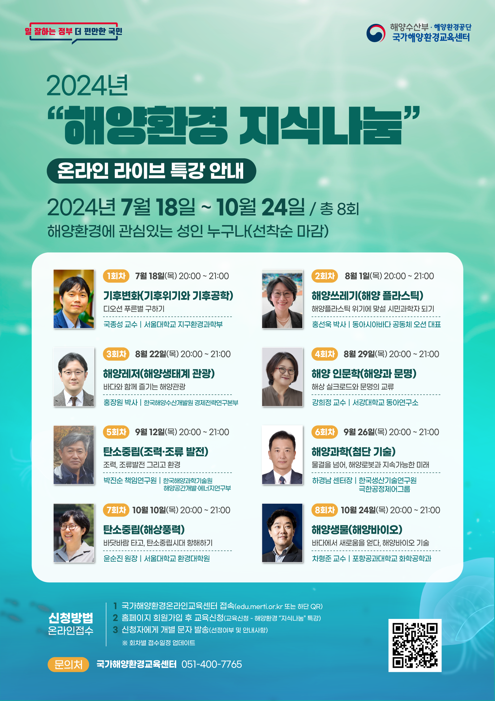 [외부] 2024년 "해양환경 지식나눔" 온라인 라이브 특강 안내