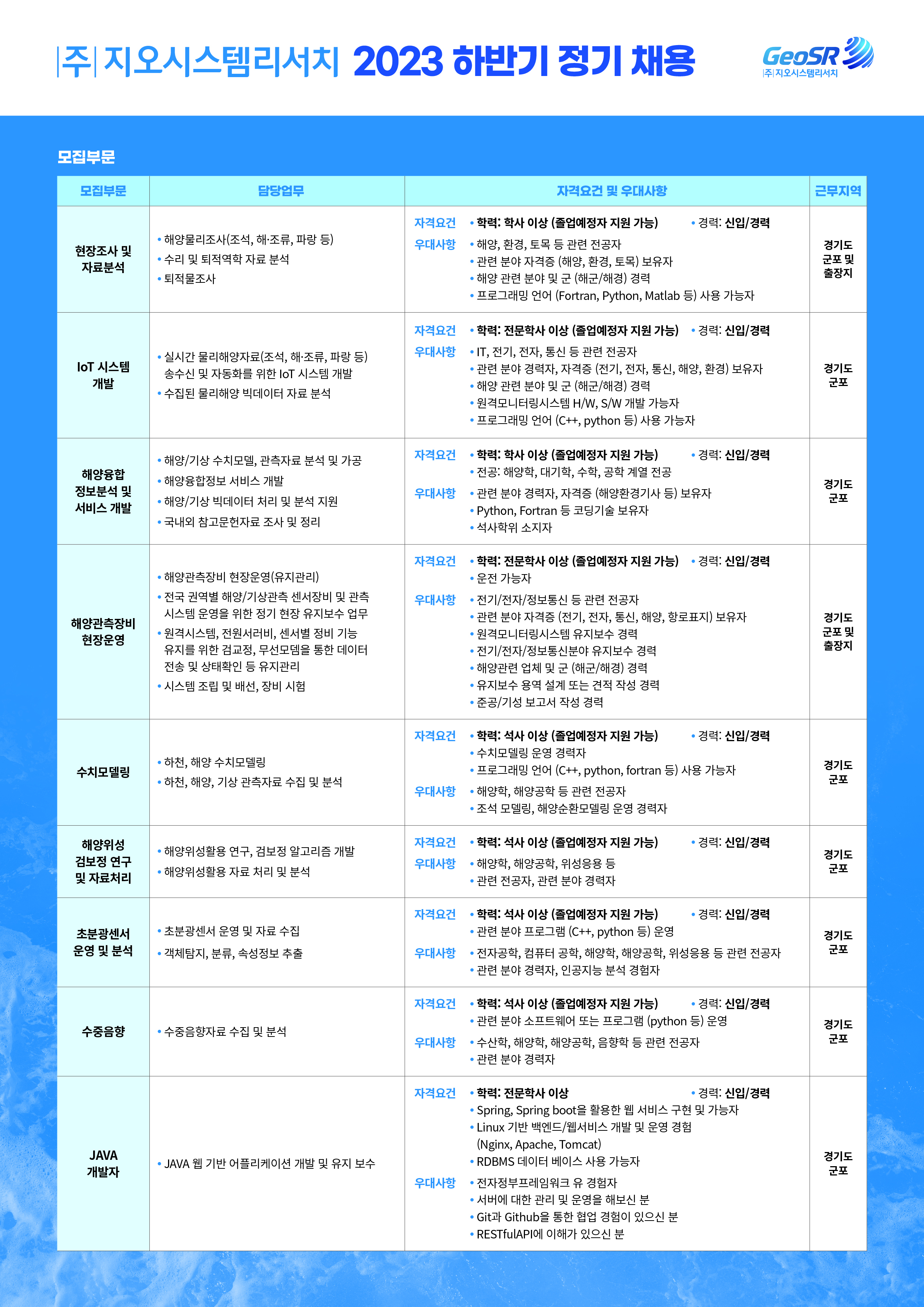 경기도 군포시에 소재하고 있는 해양환경엔지니어링서비스 전문기업 '지오시스템리서치(http://www.geosr.com/)' 입니다.