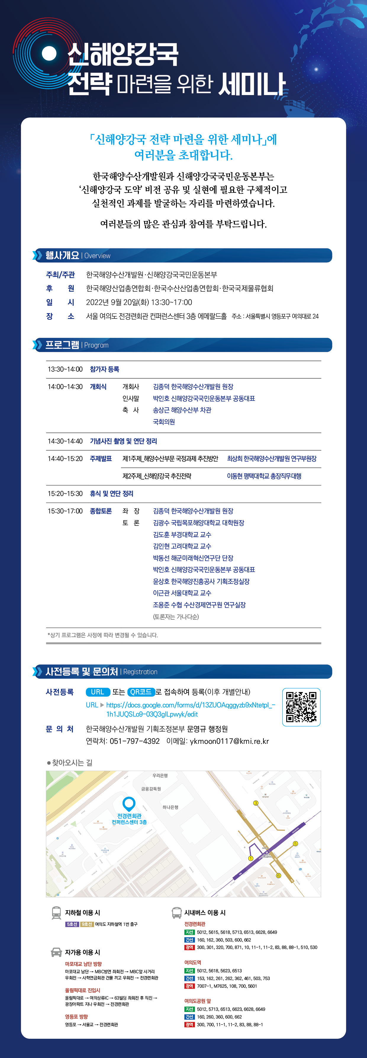 이번 세미나를 통해 '신해양강국 도약' 비전을 공유하여 비전 실현에 필요한 구체적인 과제를 발굴하기 위한 논의의 자리를 가져려고 합니다.