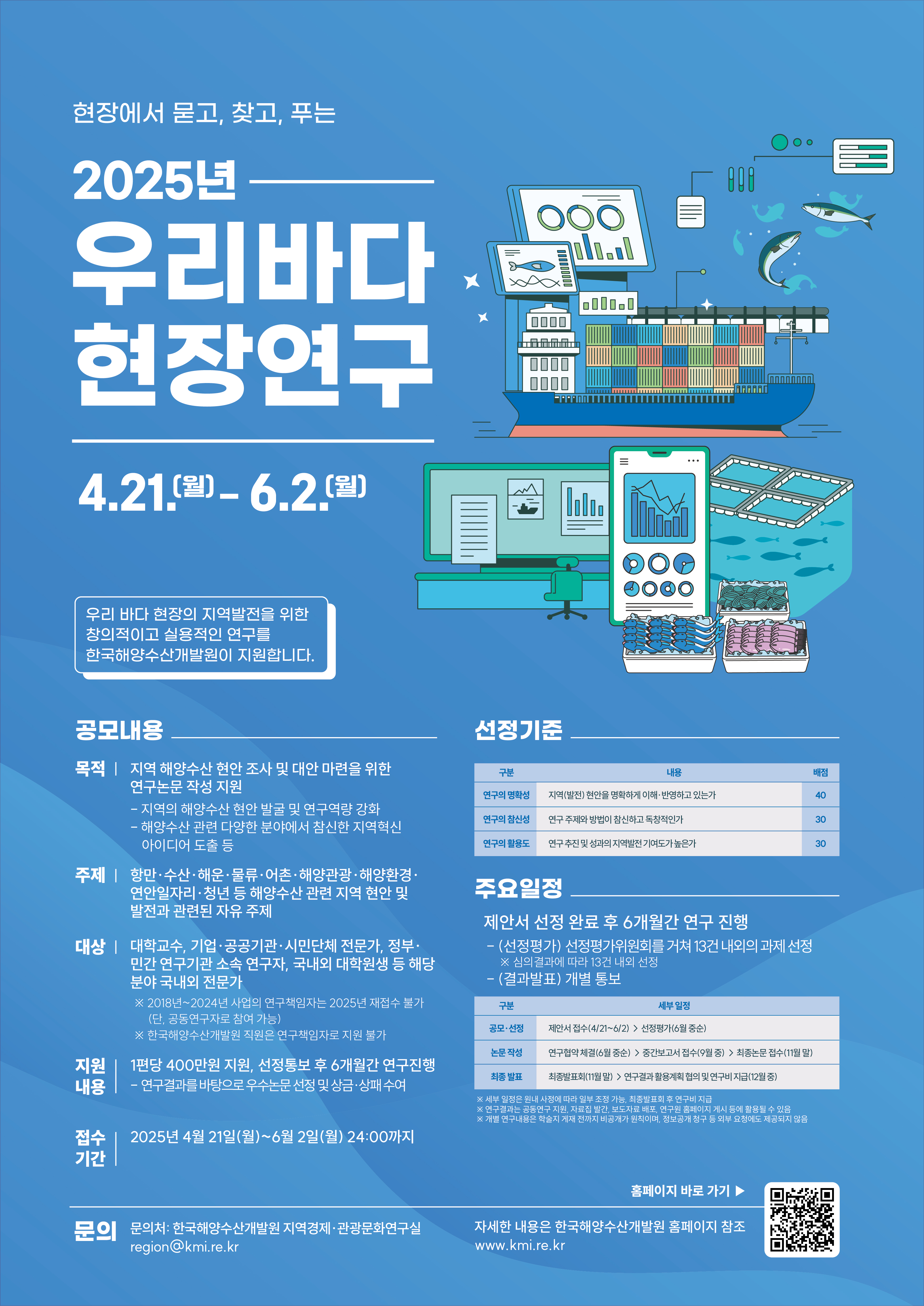 * 2025년 우리바다 현장연구 지원사업 보도자료 (https://www.kmi.re.kr/web/board/view.do?rbsIdx=68&idx=1573)